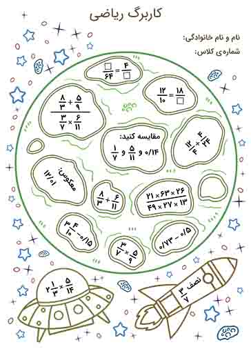 نسخه قابل ویرایش کاربرگ تمرین کسرها - ریاضی ششم ابتدایی