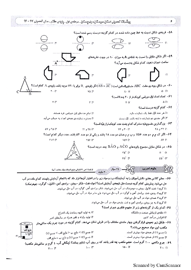 آزمون پیشرفت تحصیلی هفتم استان سیستان و بلوچستان_مرحله اول (آذر ۱۳۹6)