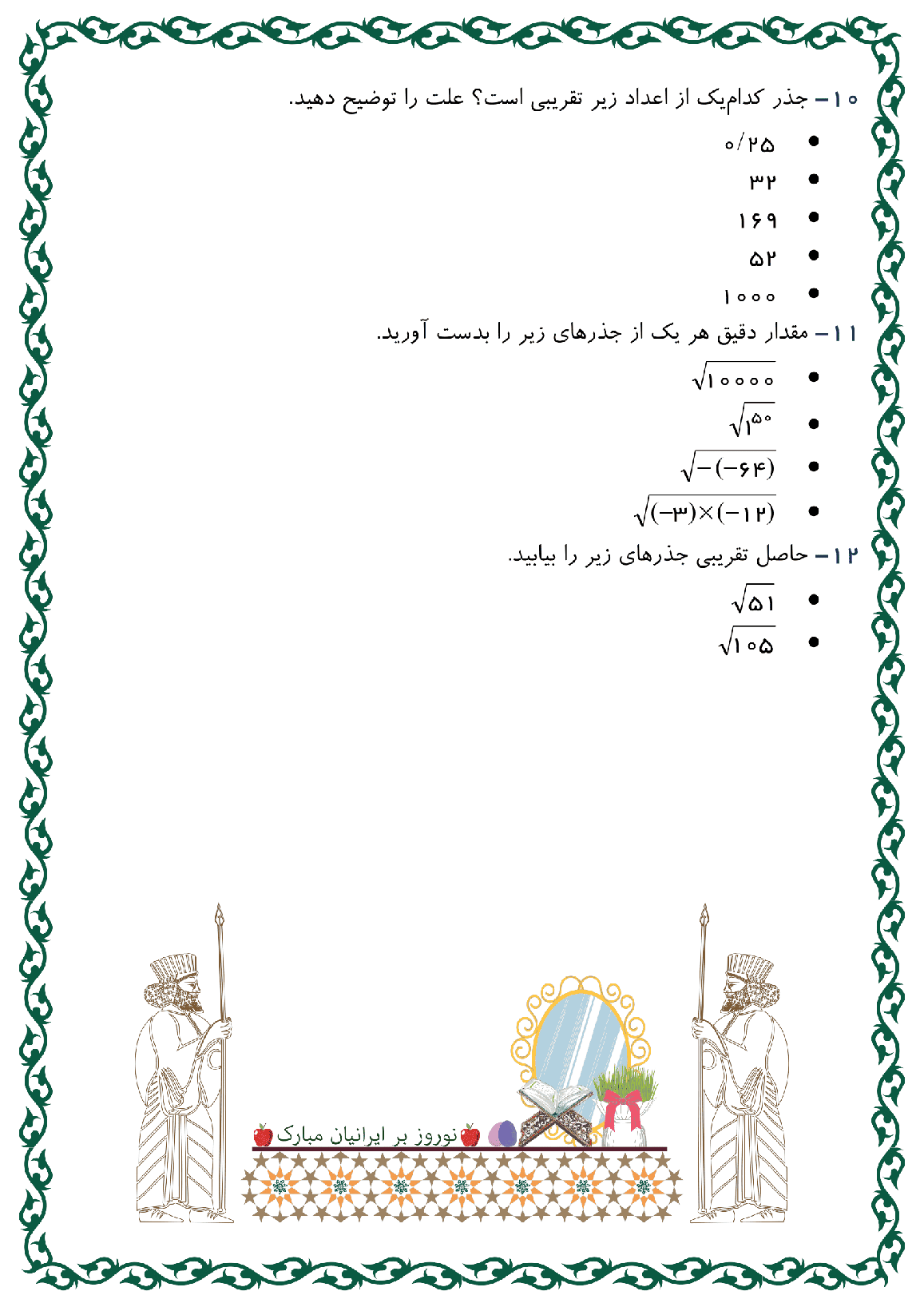 نمونه سوالات فصل 7 ریاضی پایه هفتم (توان و جذر)
