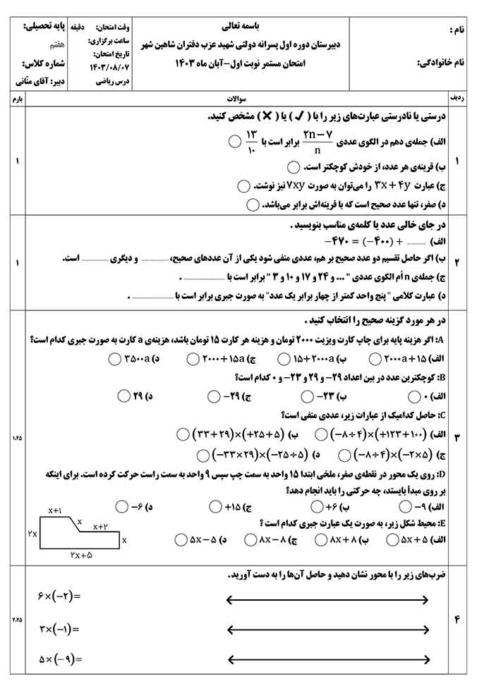 دانشآموزانی که به دنبال مرور و تثبیت یادگیری مطالب فصل دو و سه هستند یا دبیرانی که قصد دارند آزمون مستمر برگزار کنند، با استفاده از این فایل، میتوانند به این منظور آموزشی دست پیدا کنند. سوالات آزمون به صورت ترکیبی و در سطح متوسط طرح شده و کاملا استاندارد میباشند.