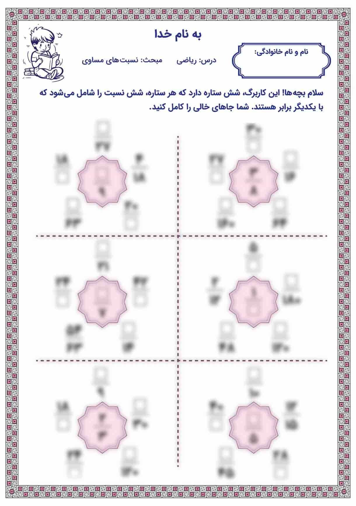 نسخه قابل ویرایش کاربرگ تمرین فصل 3 ریاضی پنجم (نسبتهای مساوی)