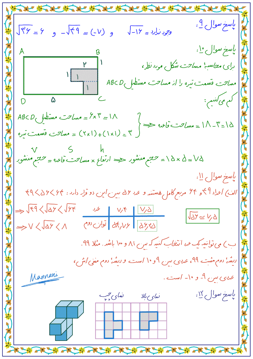 نمونه سوالات امتحانی فصل 6 و 7 ریاضی هفتم