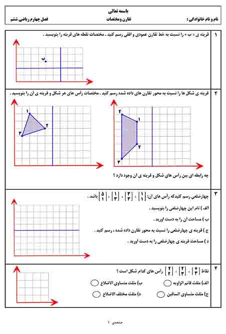 آزمون ریاضی پایه ششم – فصل چهارم (تقارن و مختصات)