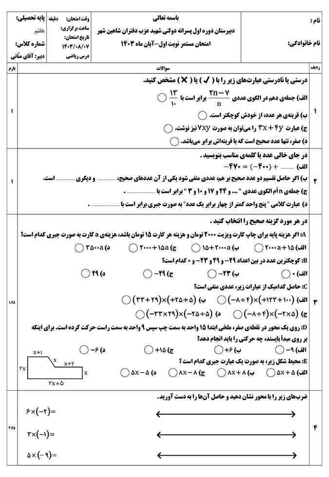 دانشآموزانی که به دنبال مرور و تثبیت یادگیری مطالب فصل دو و سه هستند یا دبیرانی که قصد دارند آزمون مستمر برگزار کنند، با استفاده از این فایل، میتوانند به این منظور آموزشی دست پیدا کنند. سوالات آزمون به صورت ترکیبی و در سطح متوسط طرح شده و کاملا استاندارد میباشند.